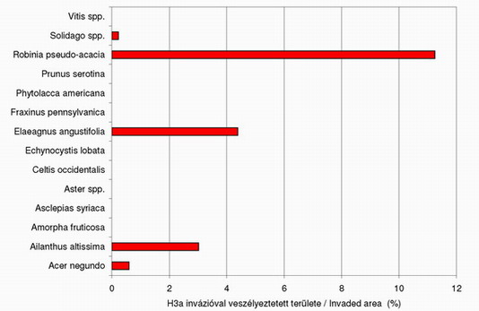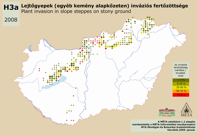 H3a - Slope steppes: 16% of its area, first of all stands in foothill areas, are endangered by plant invasion. The most important invader is the black locust (Robinia pseudoacacia).