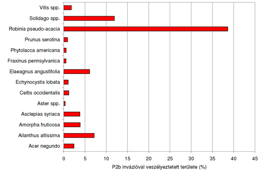 46% of its area is endangered by plant invasion. Although many alien species can occur in this habitat, it is endangered first of all by invasion of black locust (Robinia pseudoacacia).