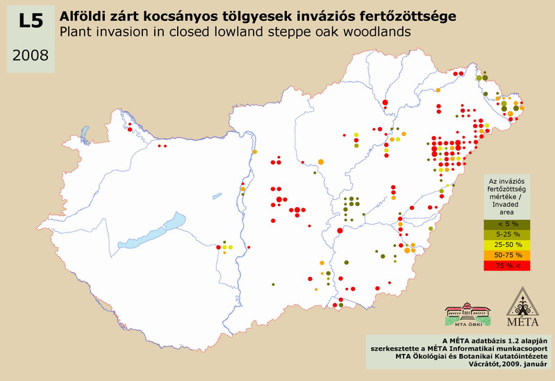 Botta-Dukát Z. (2008): Invasion of alien species to Hungarian (semi-)natural habitats Acta Botanica Hungarica 50(Suppl.): 219-227. >>> letöltés (139 KB, PDF)