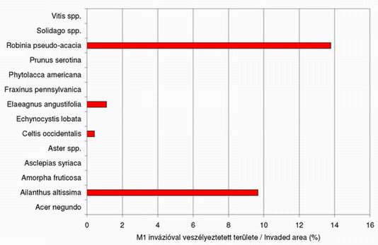 20% of its area is endangered by plant invasion. The most important invasive species are black locust (Robinia pseudoacacia) and tree of heaven (Ailanthus altissima).