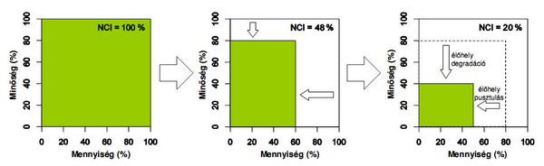 NCI = az élőhelyek mennyisége × az élőhelyek minősége