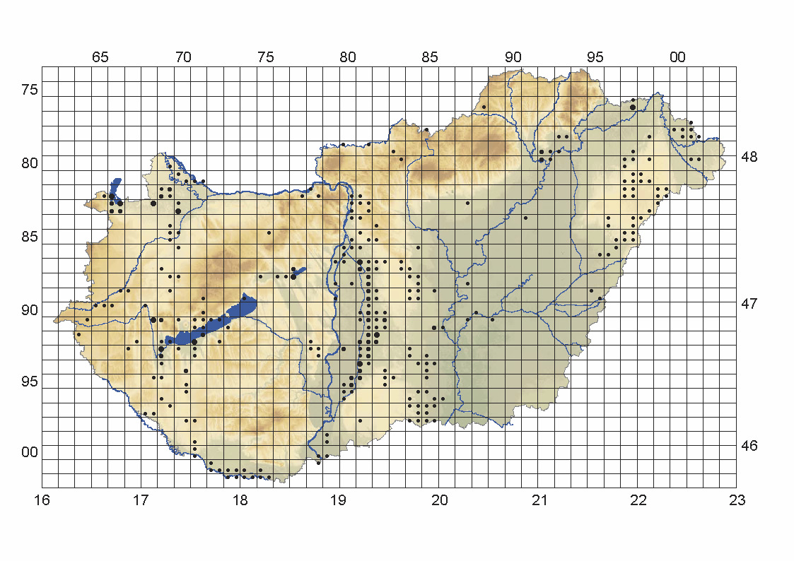 A B1b élőhely térképe az ÁNÉR 2011 könyvből: