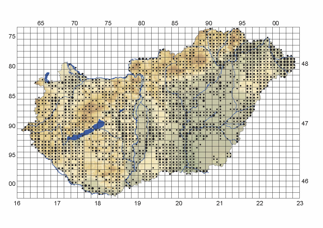 A D34 élőhely térképe az ÁNÉR 2011 könyvből: