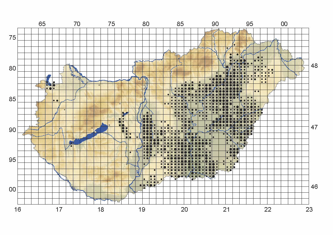 Az F2 élőhely térképe az ÁNÉR 2011 könyvből: