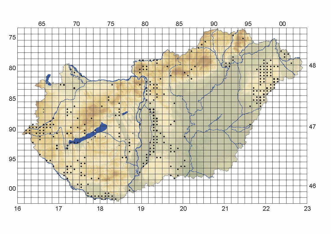 A J1a élőhely térképe az ÁNÉR 2011 könyvből: