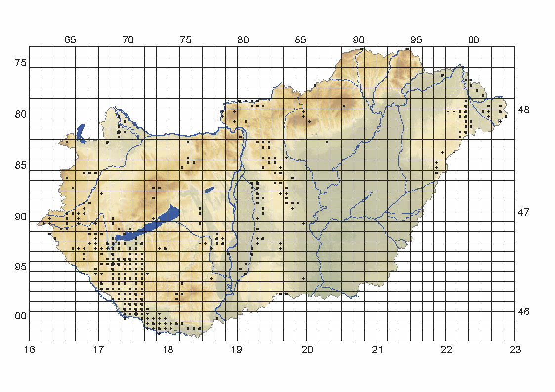 A J2 élőhely térképe az ÁNÉR 2011 könyvből: