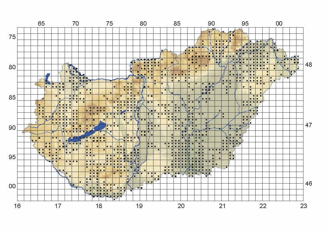 Az RA élőhely térképe az ÁNÉR 2011 könyvből:
